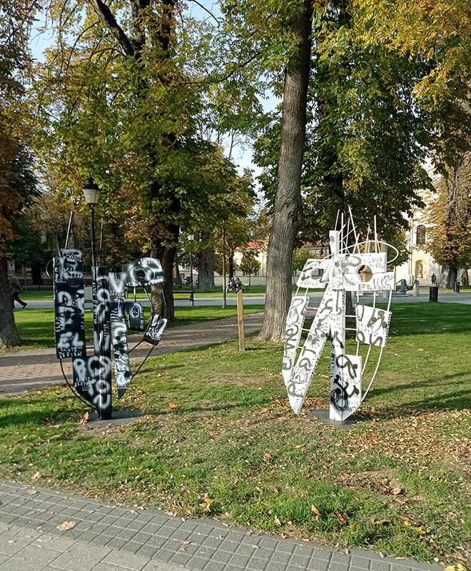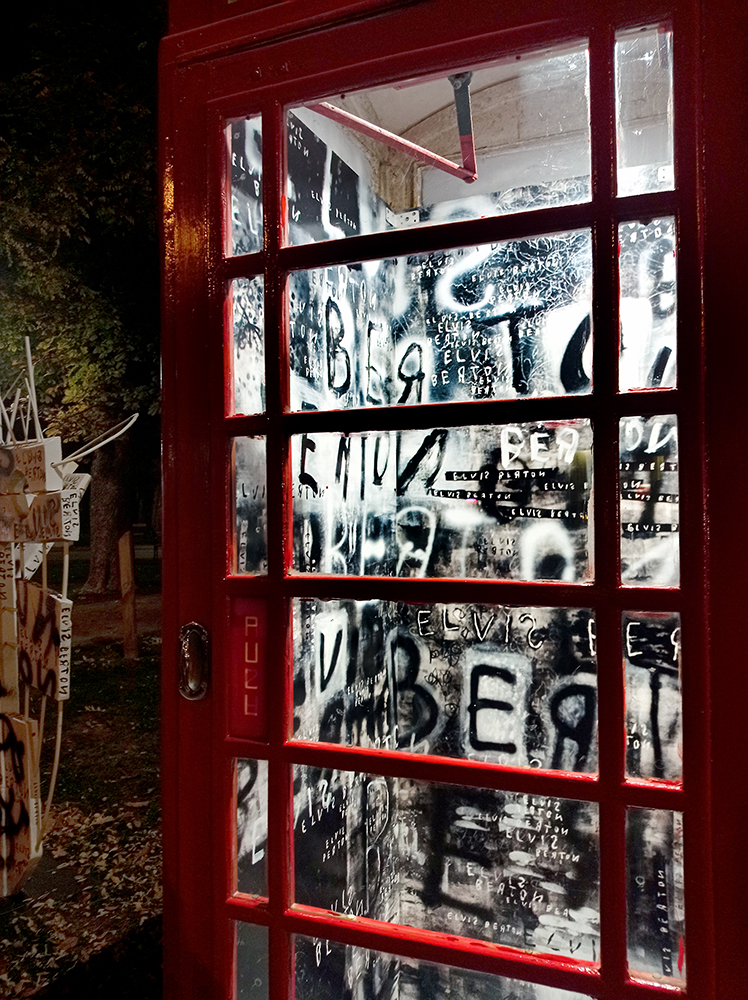 Samostalna izložba „Ego“ pazinskog likovnog umjetnika Elvisa Bertona otvorena je u četvrtak 7. studenoga 2024. u Galeriji Telephone u Vinkovcima u sklopu programa obilježavanja 78. rođendana Gradskog muzeja Vinkovci. „Kad su me iz Gradskog muzeja Vinkovci pozvali da osmislim umjetnički rad za Galeriju Telephone prvo na što sam pomislio bili su grafiti, jer su takva mjesta, pogotovo ako nisu u upotrebi, često na meti vandala. Stoga sam napravio instalaciju inspiriranu upravo street-artom, post-vandalizmom i grafitima, a sastoji se od slika apliciranih na panele unutar telefonske govornice te dvije velike skulpture glava. Radi se o svojevrsnom nastavku ciklusa „selfi(sh)“ čije su osnovne teme narcizam i egoizam, a započeo sam ga još 2016. godine zaintrigiran masovnom pojavom selfija na društvenim mrežama.